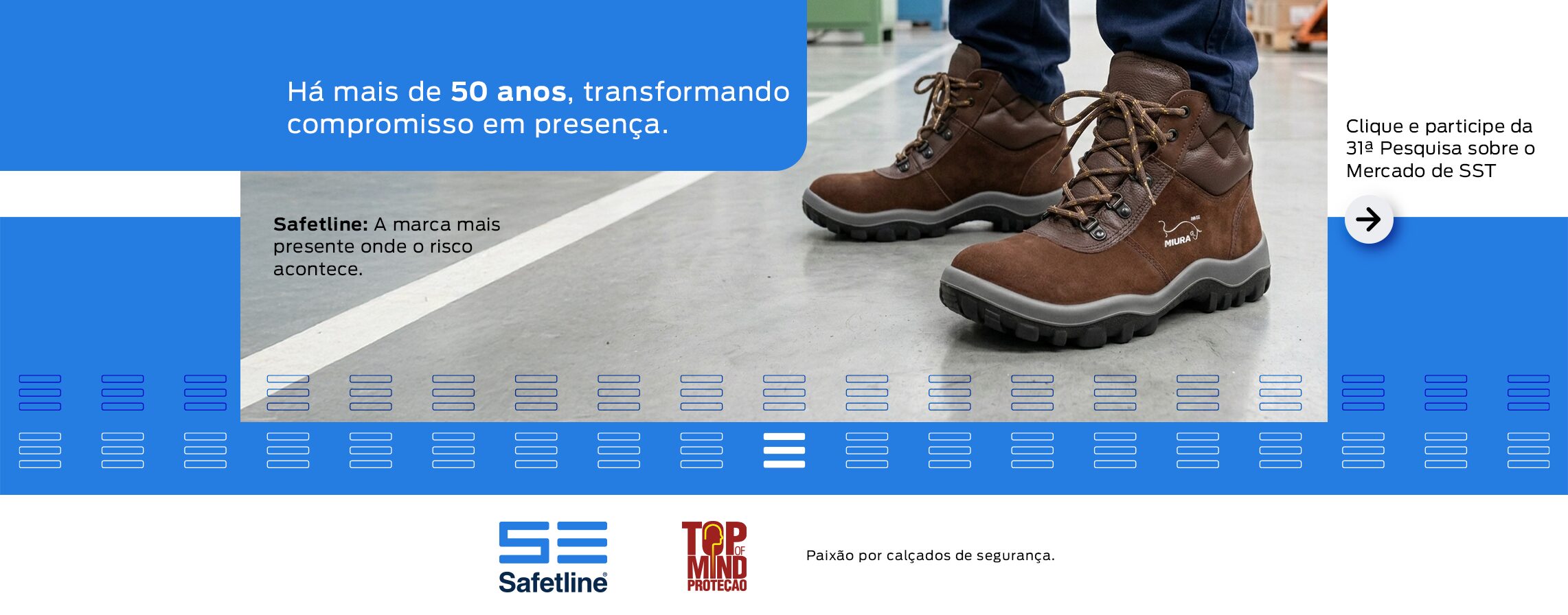 Sinônimo de qualidade e tecnologia, a Safetline é fabricante da mais completa linha de calçados de segurança do Brasil.