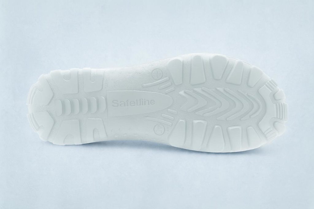 A linha Branca da Safetline foi pensada para ambientes que exigem higiene rigorosa e conforto prolongado. O modelo frigorífico tem acabamento liso, com mínimos recortes e costuras, isso evita acúmulo de resíduos ou fluidos nas dobras do calçado e facilita a limpeza diária (basta uma lavagem com sabão neutro para mantê-lo e sanitizado).