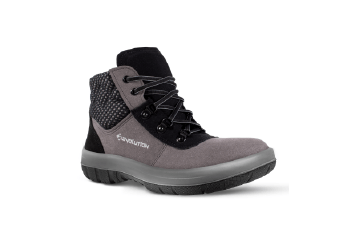 O solado da Botina Evolution Cinza e Preto é o Falcon bidensidade PU/PU (duas camadas de poliuretano) injetado diretamente no cabedal.