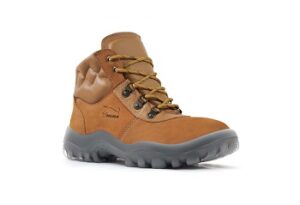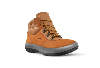 A Botina Miura Caramelo pode ser fabricada com biqueira plástica, de aço ou composite.
