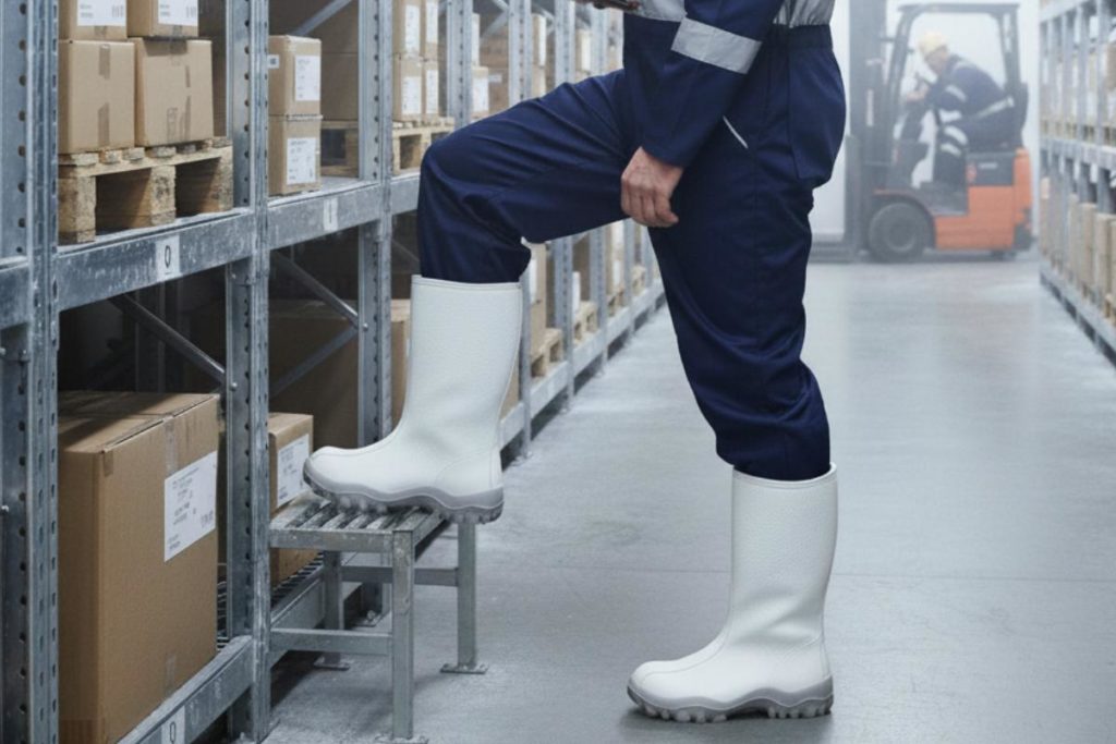 A linha Branca da Safetline foi pensada para ambientes que exigem higiene rigorosa e conforto prolongado. O modelo frigorífico tem acabamento liso, com mínimos recortes e costuras, isso evita acúmulo de resíduos ou fluidos nas dobras do calçado e facilita a limpeza diária (basta uma lavagem com sabão neutro para mantê-lo e sanitizado).