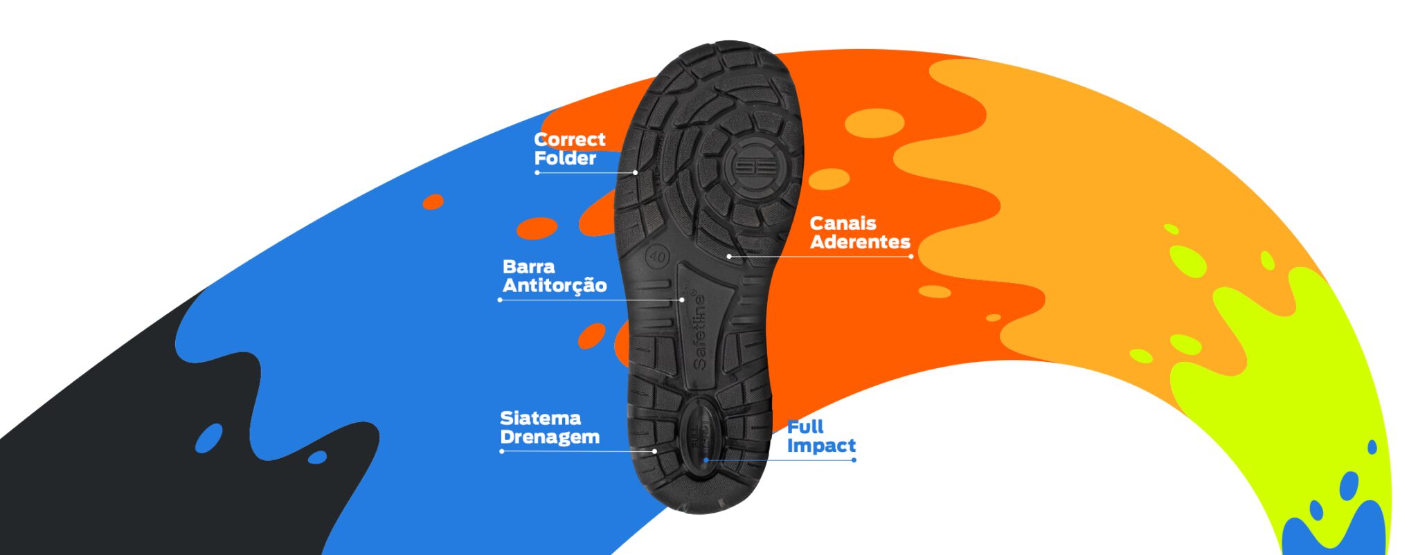 O solado desta linha é SRC, ou seja, aprovado em todos os testes previstos nas normas ABNT NBR ISO 20345 (Calçado de Segurança), ABNT NBR ISO 20346 (Calçado de Proteção) e ABNT NBR ISO 20347 (Calçado Ocupacional), oferecendo aos usuários o que existe de mais seguro em relação ao escorregamento.