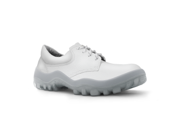O sapato de elástico acolchoado não tem partes soltas ou saliências externas, oferecendo baixa retenção de resíduos, resistência à penetração de água e conforto ao usuário.