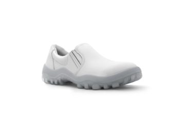 O sapato de elástico acolchoado não tem partes soltas ou saliências externas, oferecendo baixa retenção de resíduos, resistência à penetração de água e conforto ao usuário.