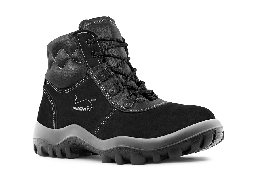 BOTINA MIURA EM NOBUCK PRETA SOLADO BIDENSIDADE PU/TPU FALCON A Botina Miura fabricada em Nobuck Preta é confeccionada em vaqueta