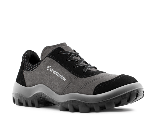 O Tênis Evolution Cinza e Preto pode ser fabricada com biqueira plástica, de aço ou composite.
